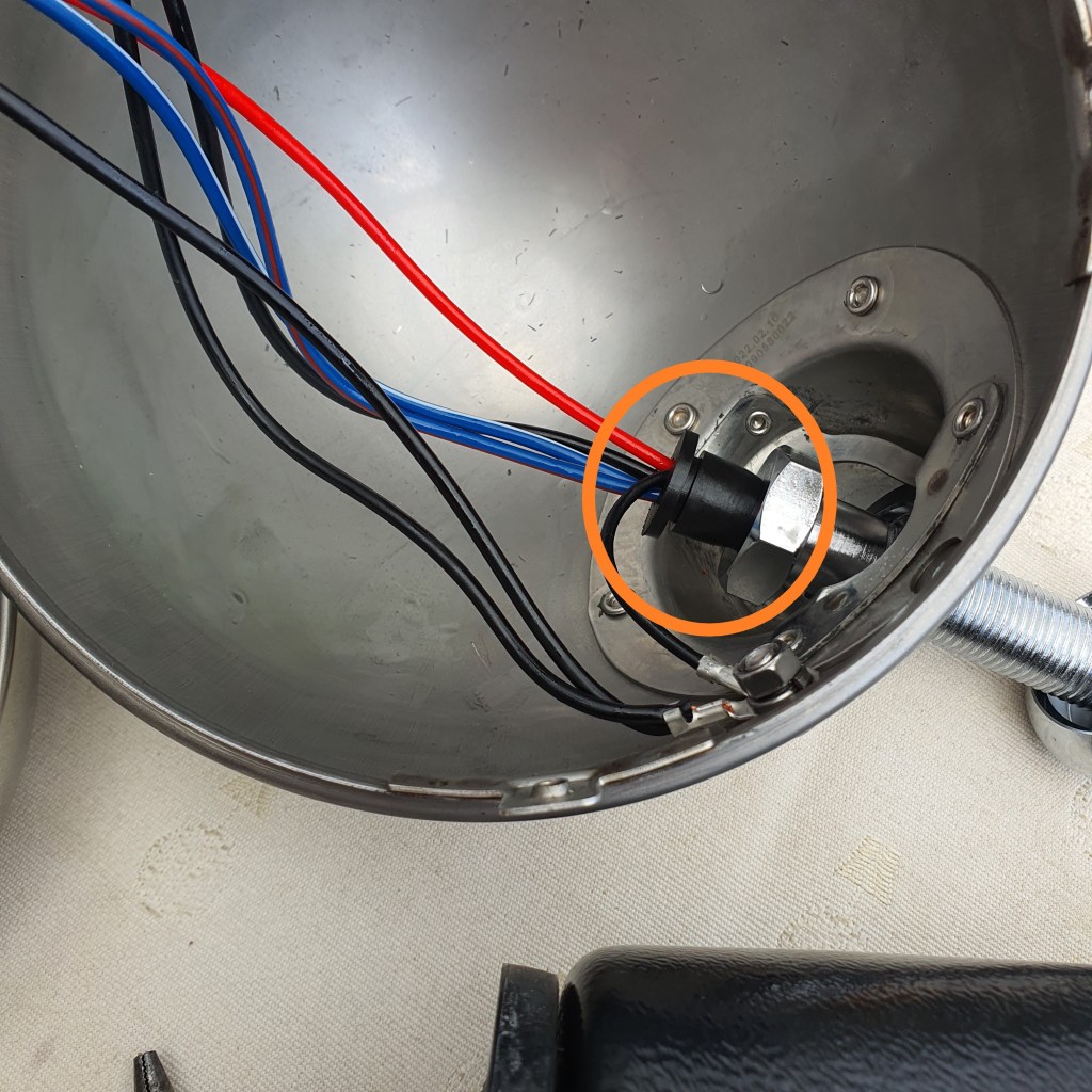 - I struggled to get the grommet in the headlight bowl to compress fully into the bolt (see image below). The headlamp bowl has some openings (presumably for cooling), so I guess it doesn’t have to be airtight.