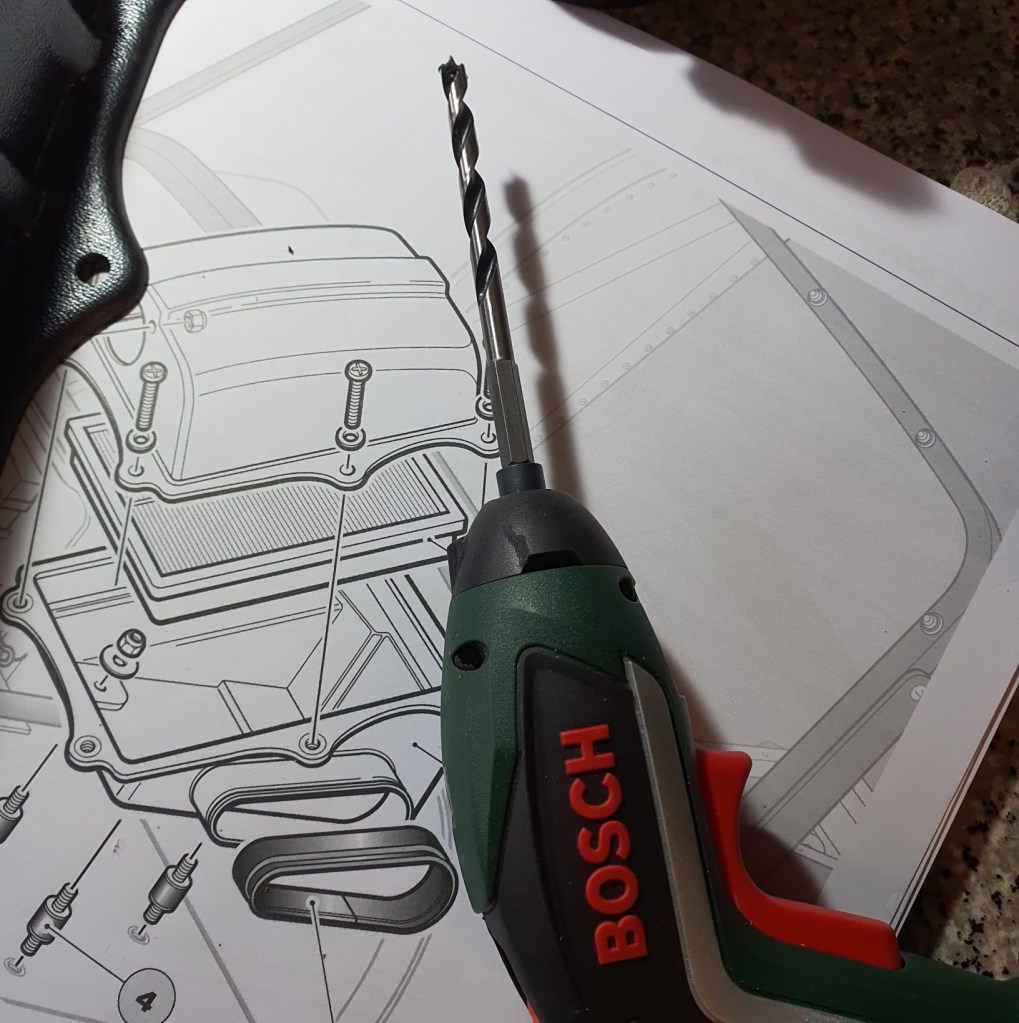 The airbox didn’t take that long to do once I had found the parts. This is one of those jobs where you need to do a bit of drilling which is always a bit worrying. My electric drill is a bit ‘all-or-nothing’ so I have been using some drill bits that will fit into my electric screwdriver. The much lower speed makes it much easier to control and it will still go through soft material fairly quickly.