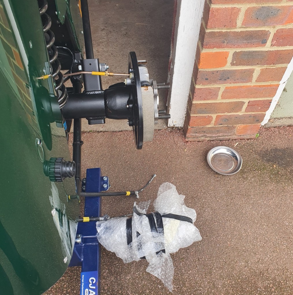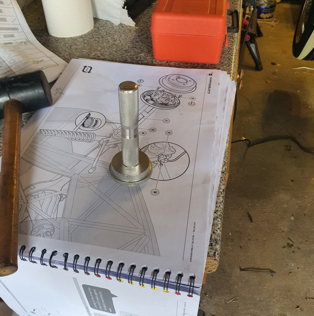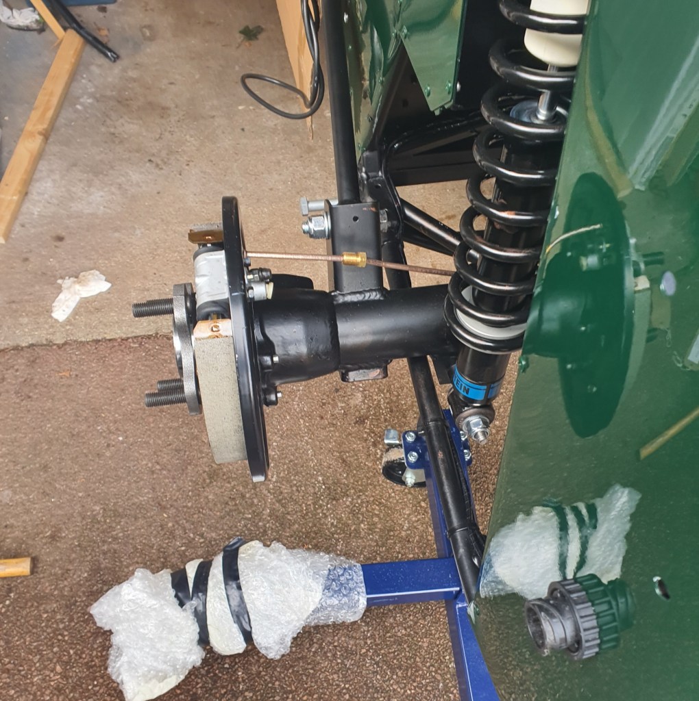 My seal drift arrived this morning and I used it to help me hammer in the oil seals for the half-shaft axles. Then the half shafts went in – they were a bit fiddly to get into position. The Assembly Guide doesn’t mention that these are not identical. One has two hydraulic connections, and this goes on the drivers side.