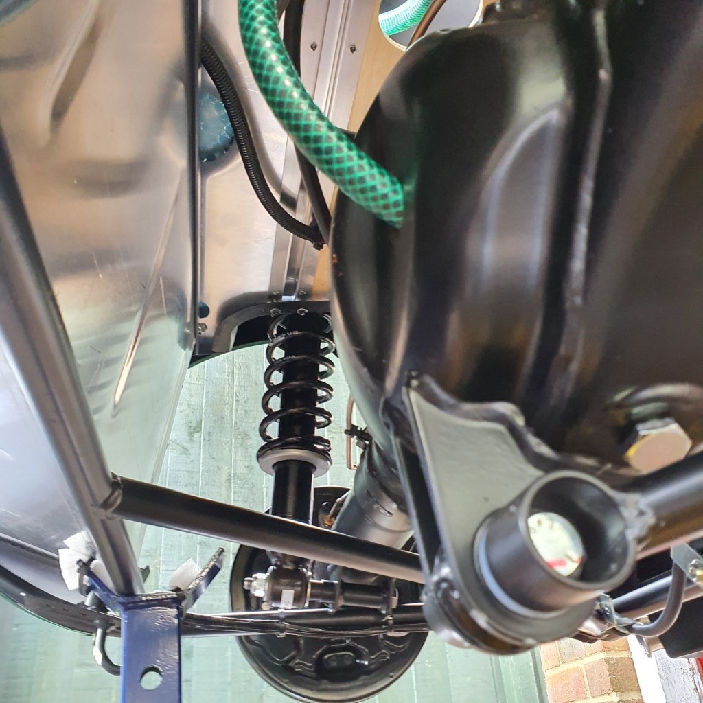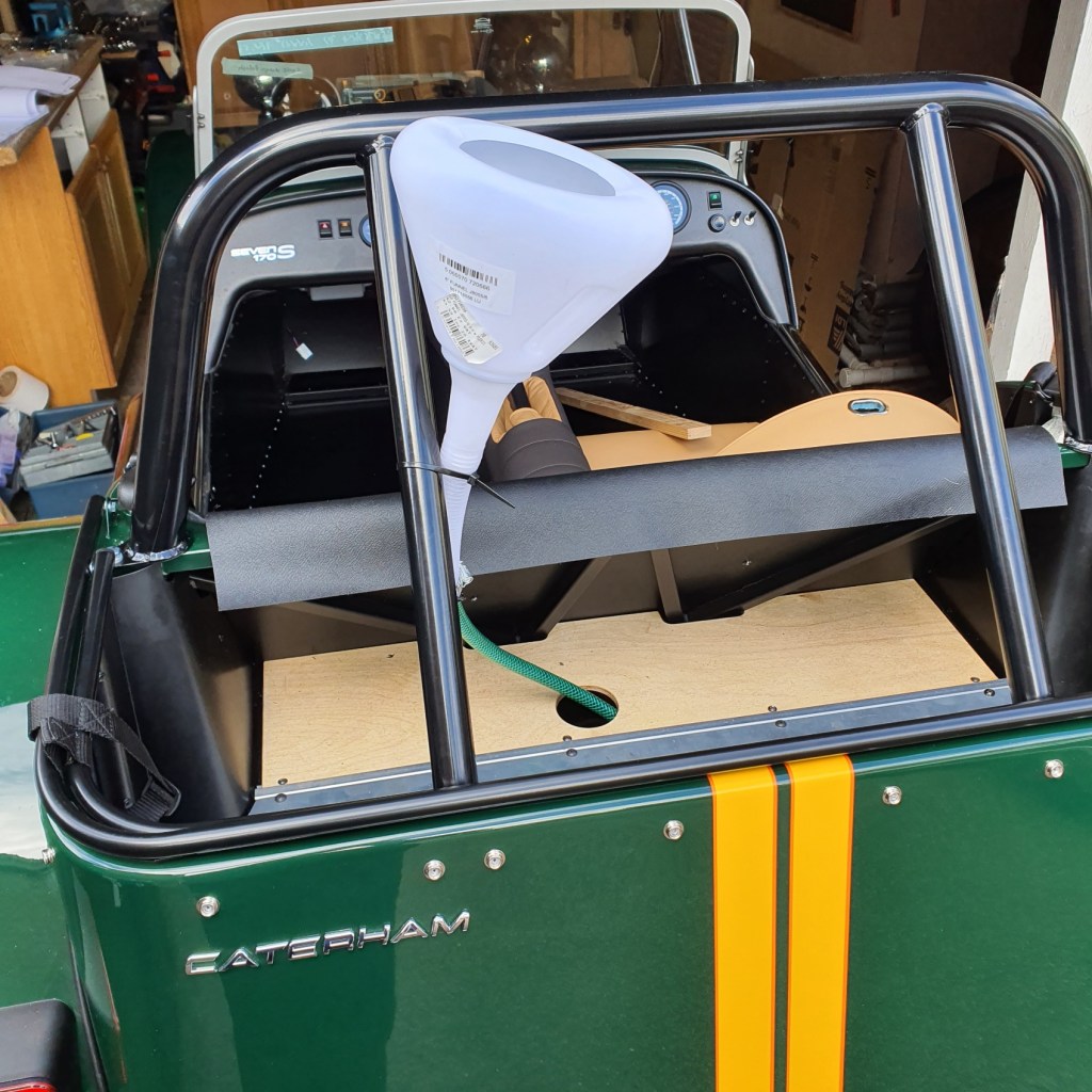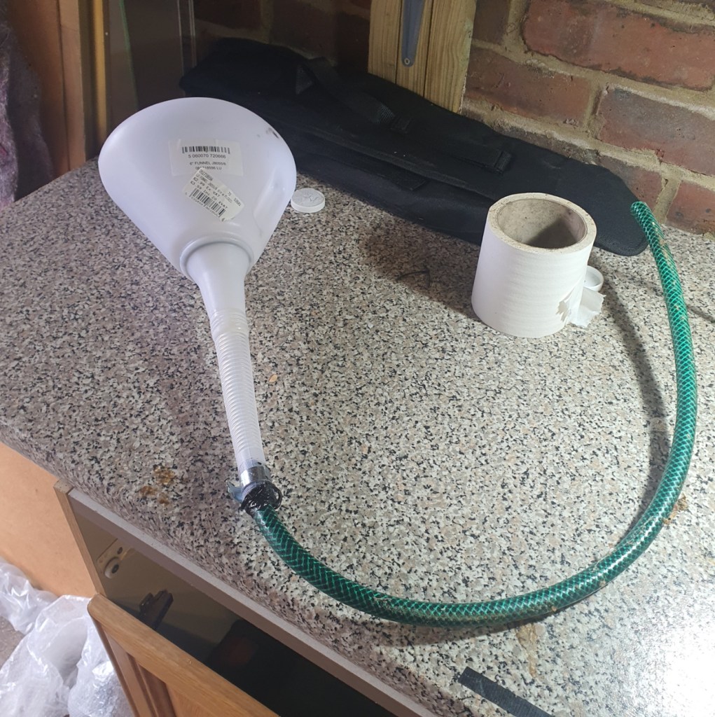 Nearly there I think. So it was time to start topping up the fluids. First up was the back axle which I filled from above with a funned glued to a piece of garden hose (making use of some of the left over black glue that holds the wings on). For some reason, the kit came with more than twice the amount of oil than I actually needed. [took this spare oil with me to the 1000 mile service so it could be used up]