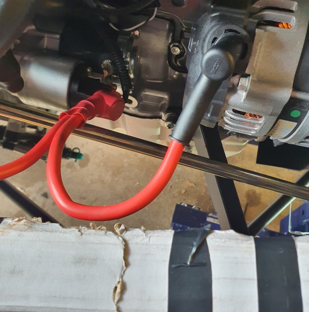 And finally for the day, I hooked up with electrics to the battery. My kit includes the cut off switch so I turned this off to be absolutely sure nothing was going to happen. The Assembly Guide is pretty easy to follow on this one. My only difficulty was connecting the earth off the engine as the large bolt you are meant to connect to was a bit tricky to access. It would be been a lot easier to do this connection before the various engine plumbing was in place.