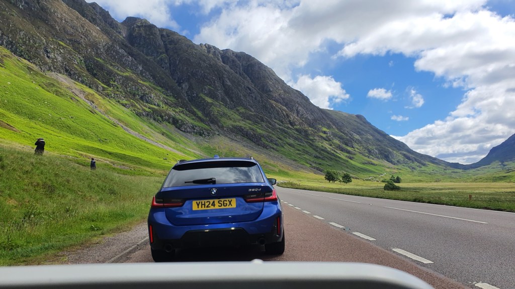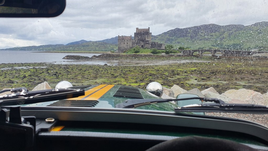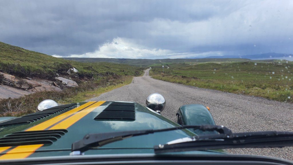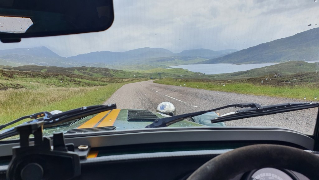 Hmmm, lets not talk about that. Suffice to say, I didn’t need to trouble the tube of sunblock in the map pocket of the car. With so much stop-start driving you do get wet as the rain doesn’t get blown over the windscreen as would normally be the case. We weren’t bothered much by the midges.
