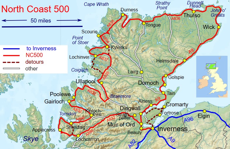 The NC500 is a loop starting in Inverness and looping around the east, north and west coasts of scotland. And that was the order we did it – some say that this way (anti-clockwise) saves the best scenery until last, but in my case, it saved the worst weather till last.